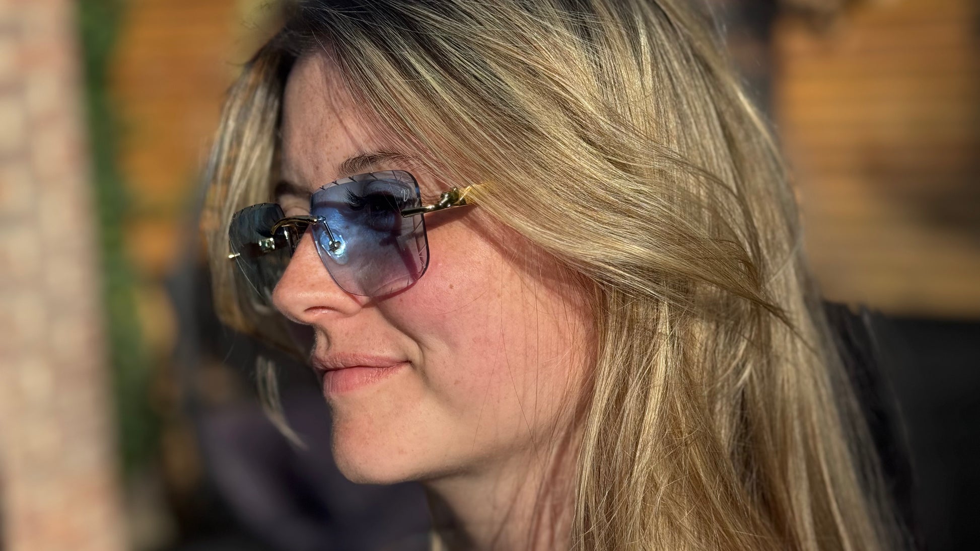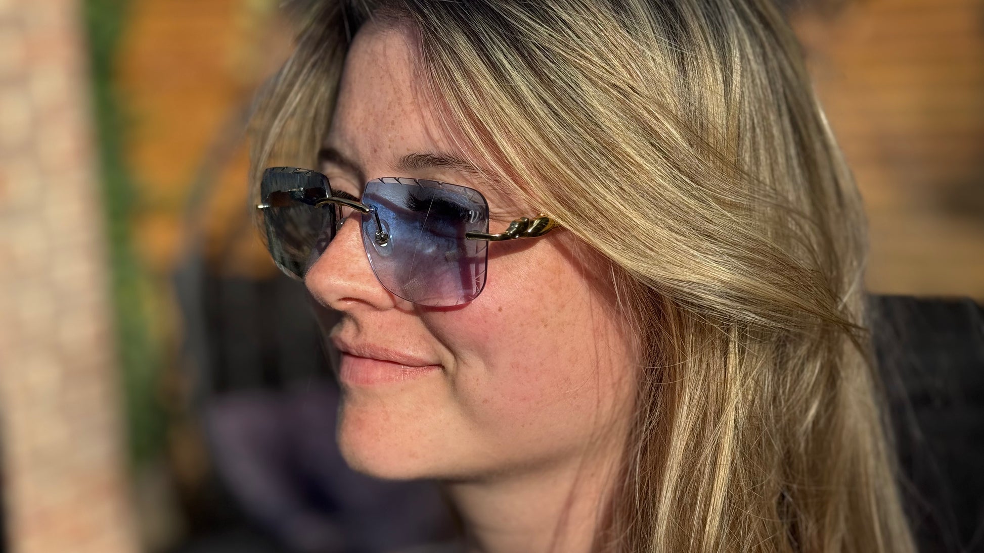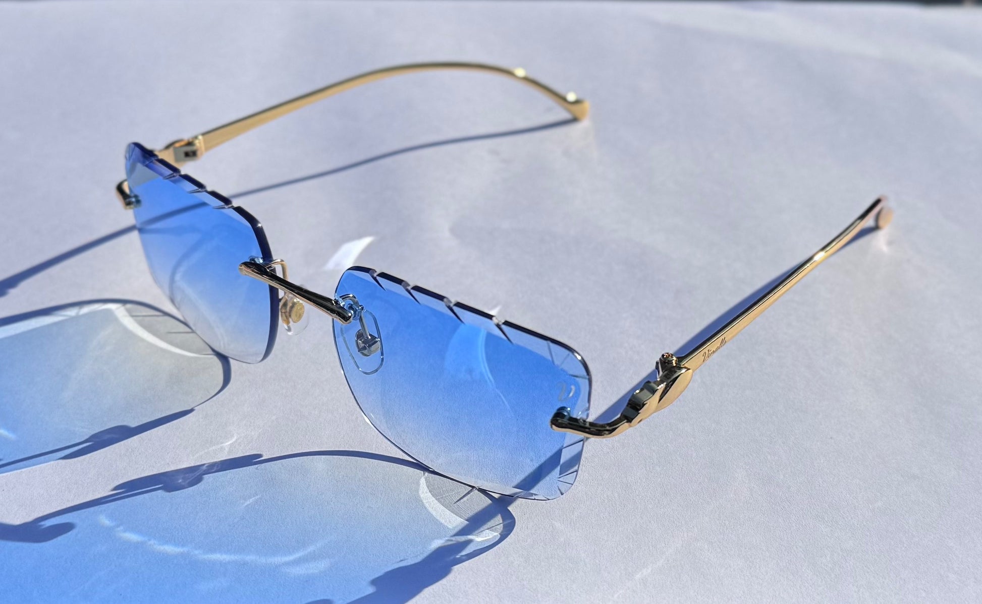 The Genie sunglasses feature sleek gold arms designed to comfortably slide onto your head without tangling in your hair. Crafted with cut lenses and beveled sides, they combine both style and comfort for a sophisticated look.